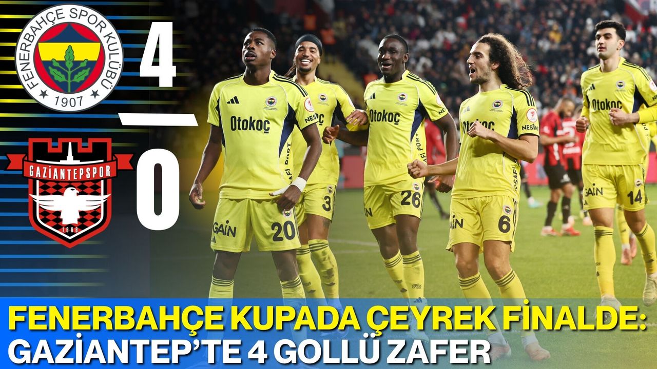 Ziraat Türkiye Kupası C Grubu 4. hafta mücadelesinde Fenerbahçe, Gaziantep FK deplasmanına konuk oldu. Sarı-lacivertli ekip karşılaşmayı 4-0 kazanarak grubu 9 puanla ikinci sırada tamamladı ve çeyrek finale adını yazdırdı.