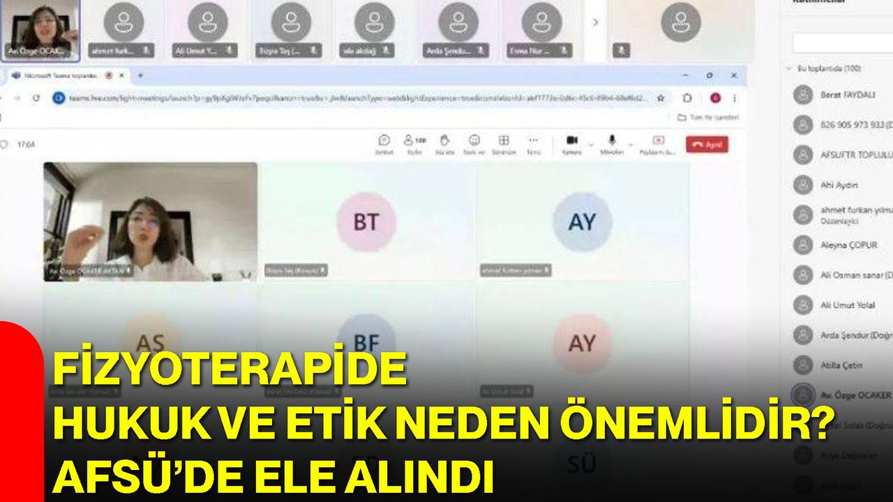 Afyonkarahisar Sağlık Bilimleri Üniversitesi bünyesinde faaliyet gösteren Kamu Denetçiliği Topluluğu ile Fizyoterapi ve Rehabilitasyon Topluluğu iş birliğinde “Fizyoterapide Hukuk ve Etik” başlıklı eğitim programı çevrim içi ortamda gerçekleştirildi. Etkinlikte, fizyoterapistlerin mesleki görev, yetki ve sorumluluklarına ilişkin temel başlıklar ele alınırken, farklı meslek disiplinlerine yönelik farkındalığın artırılması ve öğrencilerin mesleki gelişimlerine katkı sağlanması hedeflendi.