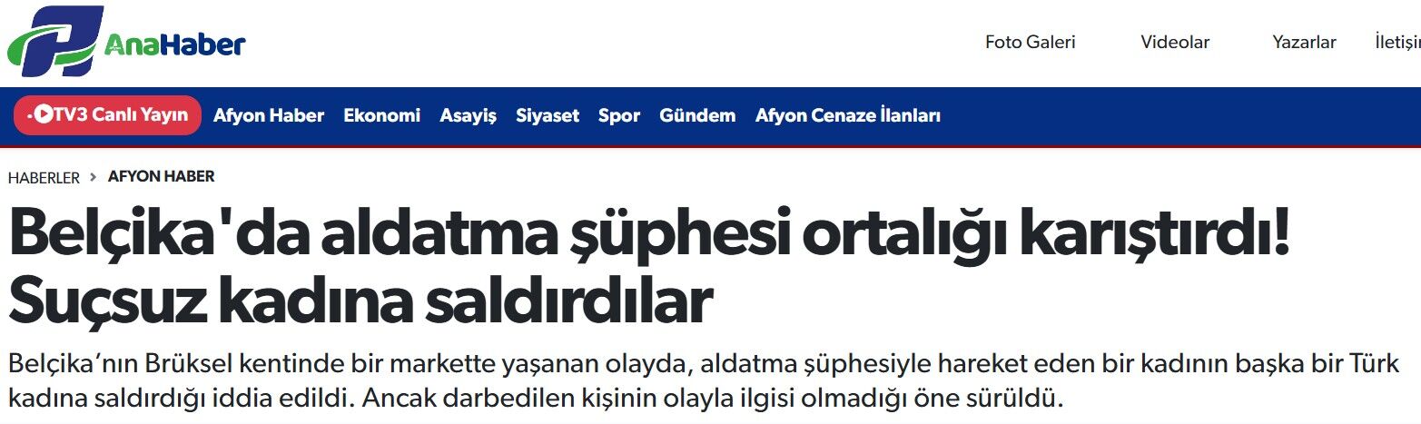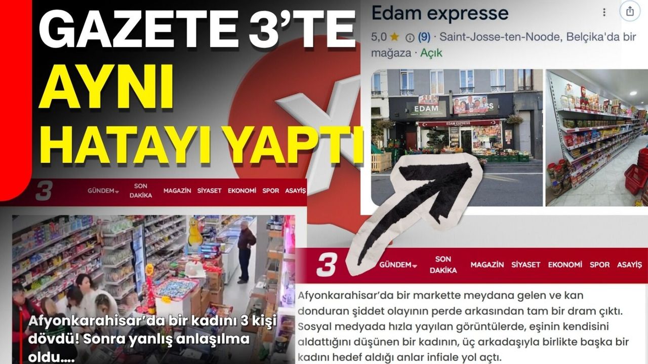 Bu yanlış zincirine sonradan Gazete 3 de eklendi. Gazete 3’ün internet sitesinde yayımlanan “Afyonkarahisar’da bir kadını 3 kişi dövdü! Sonra yanlış anlaşılma oldu…” başlıklı haber dikkat çekti. Olayın aslında Belçika’da yaşandığı çoktan ortaya çıkmışken, Gazete 3’ün geç haberdar olup aynı yanlışı sürdürmesi, masa başı haberciliğin en çarpıcı örneklerinden biri olarak değerlendirildi.