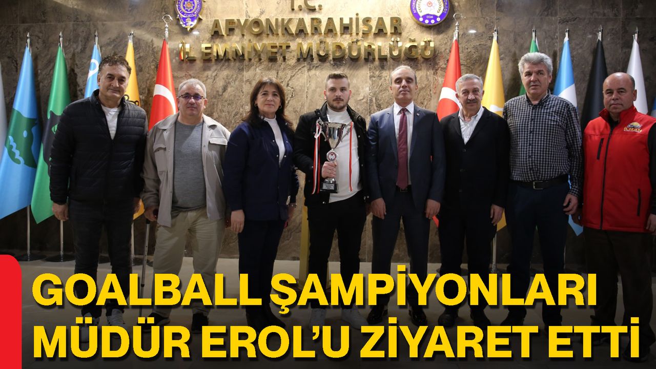 Türkiye Görme Engelliler Derneği Afyonkarahisar Şube Başkanı Mesut Yurt, Görme Engelliler Gençlik ve Spor Kulübü Başkanı Serap Güderler, yönetim kurulu üyeleri ve Türkiye Görme Engelliler Spor Federasyonu tarafından düzenlenen Goalball müsabakalarında şampiyonluk elde eden Afyonkarahisar Engelliler Gençlik Spor Kulübü sporcusu Levent Ülgü, İl Emniyet Müdürü Ahmet Birtan Erol’u makamında ziyaret etti. Ziyarette sporcuların başarısının şehir adına önemli bir gurur kaynağı olduğu belirtildi.