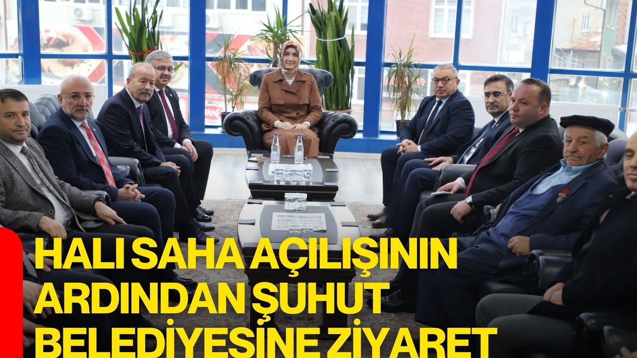 Şehit Yasin Çubuk Halı Sahası’nın açılış programının ardından, Afyonkarahisar Valisi Doç. Dr. Kübra Güran Yiğitbaşı ile birlikte TBMM Başkanlık Divanı Kâtip Üyesi ve Afyonkarahisar Milletvekili Av. İbrahim Yurdunuseven, Afyonkarahisar Milletvekili Dr. Hasan Arslan, MHP Afyonkarahisar Milletvekili Mehmet Taytak AK Parti Afyonkarahisar İl Başkanı Av. Turgay Şahin, MHP Afyonkarahisar İl Başkanı Ahmet Kahveci ve protokol üyeleri, Şuhut Belediyesini ziyaret etti.