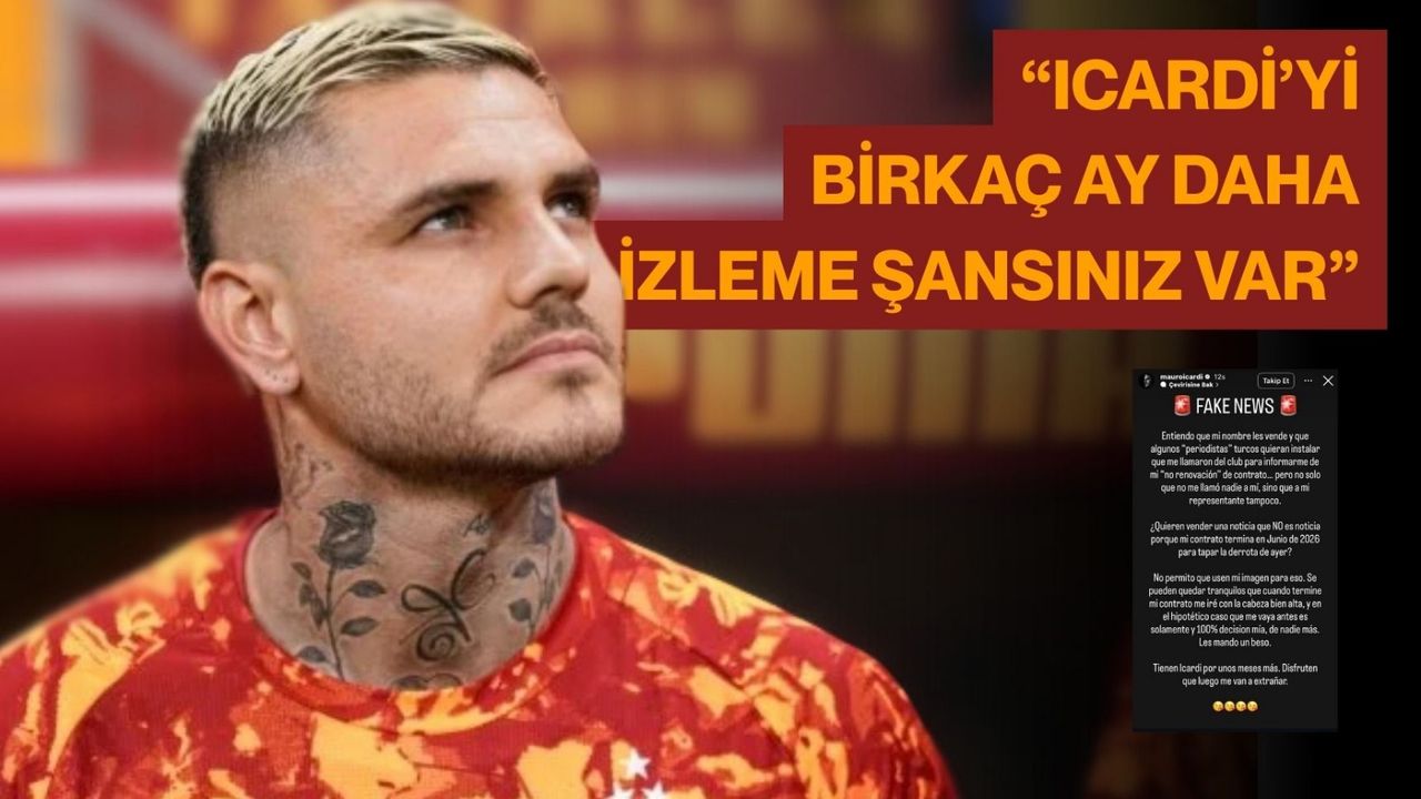 Yıldız futbolcu, “Adımın sattığını biliyorum ama dünkü yenilgiyi örtmek için olmayan bir şeyi haber diye sunmak doğru değil. Sözleşmem Haziran 2026’da bitiyor” ifadelerini kullandı. Açıklamasında görüntüsünün manipüle edilmesine izin vermeyeceğini vurgulayan Icardi, “Sözleşmem bittiğinde başım dik bir şekilde ayrılırım. Eğer daha önce gidersem bu tamamen benim kararım olur, başkasının değil” dedi. Sözlerini esprili bir dille tamamlayan Arjantinli yıldız, “Icardi’yi birkaç ay daha izleme şansınız var. Tadını çıkarın, sonra beni özleyeceksiniz” ifadelerini kullandı.