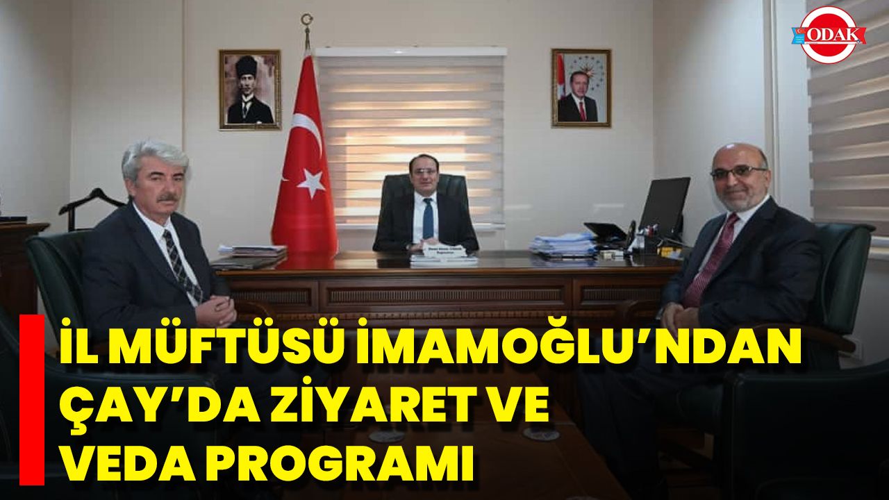 Afyonkarahisar İl Müftüsü Lütfü İmamoğlu, Çay ilçesine gerçekleştirdiği ziyaret kapsamında ilk olarak İlçe Müftüsü Şevket Karaca ile bir araya geldi. Daha sonra Kaymakam Hasan Hüsnü Türker’i makamında ziyaret eden İmamoğlu, ilçedeki çalışmalar hakkında bilgi alışverişinde bulundu.