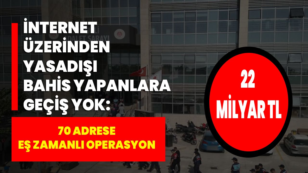 Alınan bilgiye göre, İl Jandarma Komutanlığı Siber Suçlarla Mücadele Şube Müdürlüğü ekipleri Erdemli Cumhuriyet Başsavcılığı koordinesinde yasadışı bahisle ilgili çalışma yaptı. Ekiplerin çalışmasında 59 şüphelinin internet üzerinden yasadışı bahis oynatarak haksız kazanç elde ettiği, 9 aylık hesap hareketlerinde ise 22 milyar TL’lik işlem hacmi olduğu belirlendi. Bunun üzerine Mersin merkezli Adana, Bursa, İstanbul, Sivas ve Manisa’da 70 adrese eş zamanlı operasyon düzenlendi.