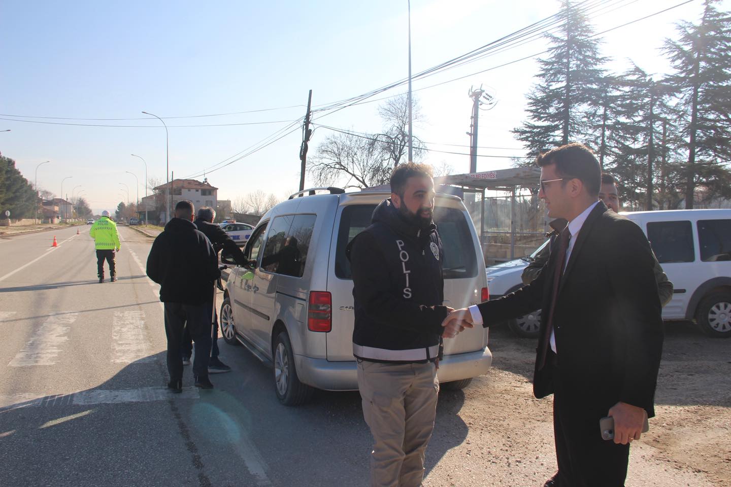 Kaymakam Okumuş, görev başındaki polis memurlarıyla sohbet ederek yapılan uygulamalar hakkında detaylı bilgi aldı.