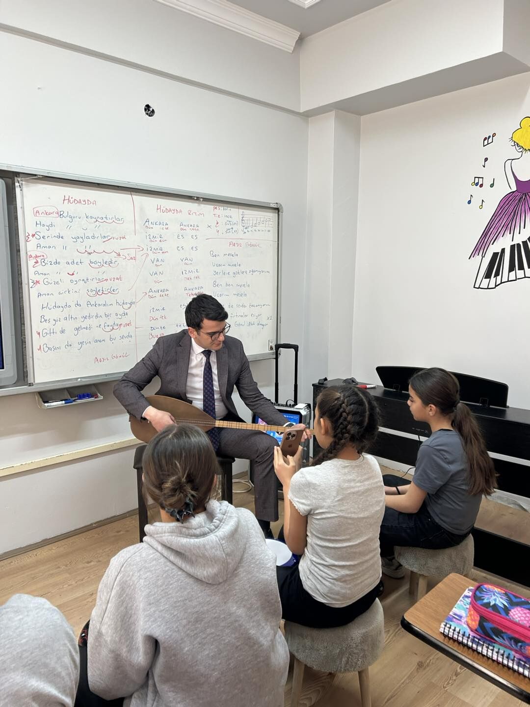 Halk Eğitimi Merkezinde gerçekleştirilen kurs kapsamında öğrencilerle bir süre sohbet eden Kaymakam Okumuş, kursun işleyişi ve yürütülen çalışmalar hakkında bilgi aldı. Ziyaret sırasında kursiyerlerin çalışmalarını da izleyen Okumuş, bağlama çalarak müzik çalışmalarına eşlik etti.
