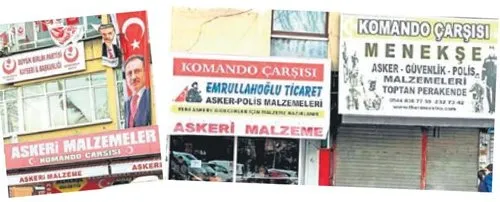 Nereye baksak, Komando Çarşısı tabelası... Asker... Güvenlik... Polis malzemeleri... Toptan, perakende... Bu sektör de oldukça hareketli.