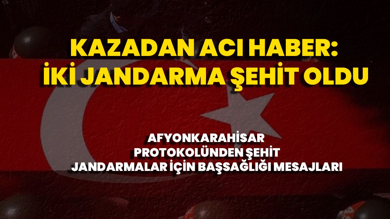 Afyonkarahisar Valiliği, şehitler için yayımladığı mesajda şu ifadelere yer verdi: “Milletimizin başı sağ olsun. Sakarya İl Jandarma Komutanlığı emrinde görevli J.Asb.Kd.Çvş. Tacettin Gün ve J.Asb.Kd.Çvş. Hakkı Eryılmaz, görev esnasında geçirdikleri trafik kazasında şehit olmuştur. Şehitlerimize Allah’tan rahmet; kederli ailelerine, silah arkadaşlarına, Türk Silahlı Kuvvetleri’ne ve aziz milletimize başsağlığı diliyoruz.”