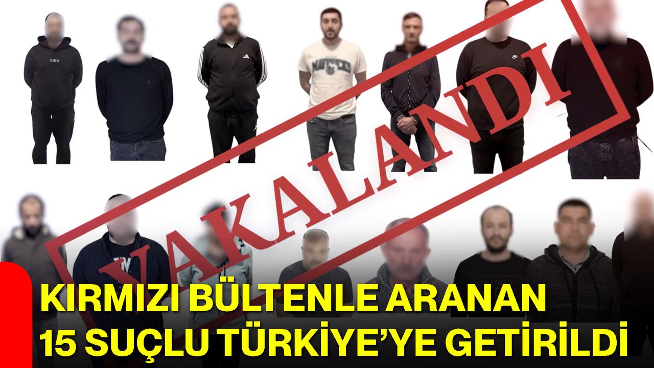 İçişleri Bakanı Ali Yerlikaya, uluslararası ve ulusal düzeyde aranan suçlulara yönelik yürütülen operasyonlar kapsamında 9’u kırmızı bültenle, 6’sı ise ulusal seviyede aranan toplam 15 kişinin Gürcistan, Almanya, Karadağ, Azerbaycan, Kuzey Makedonya ve Yunanistan’dan Türkiye’ye getirildiğini duyurdu. Yerlikaya, suç ve suçlularla mücadelenin kararlılıkla sürdürüldüğünü vurguladı.
