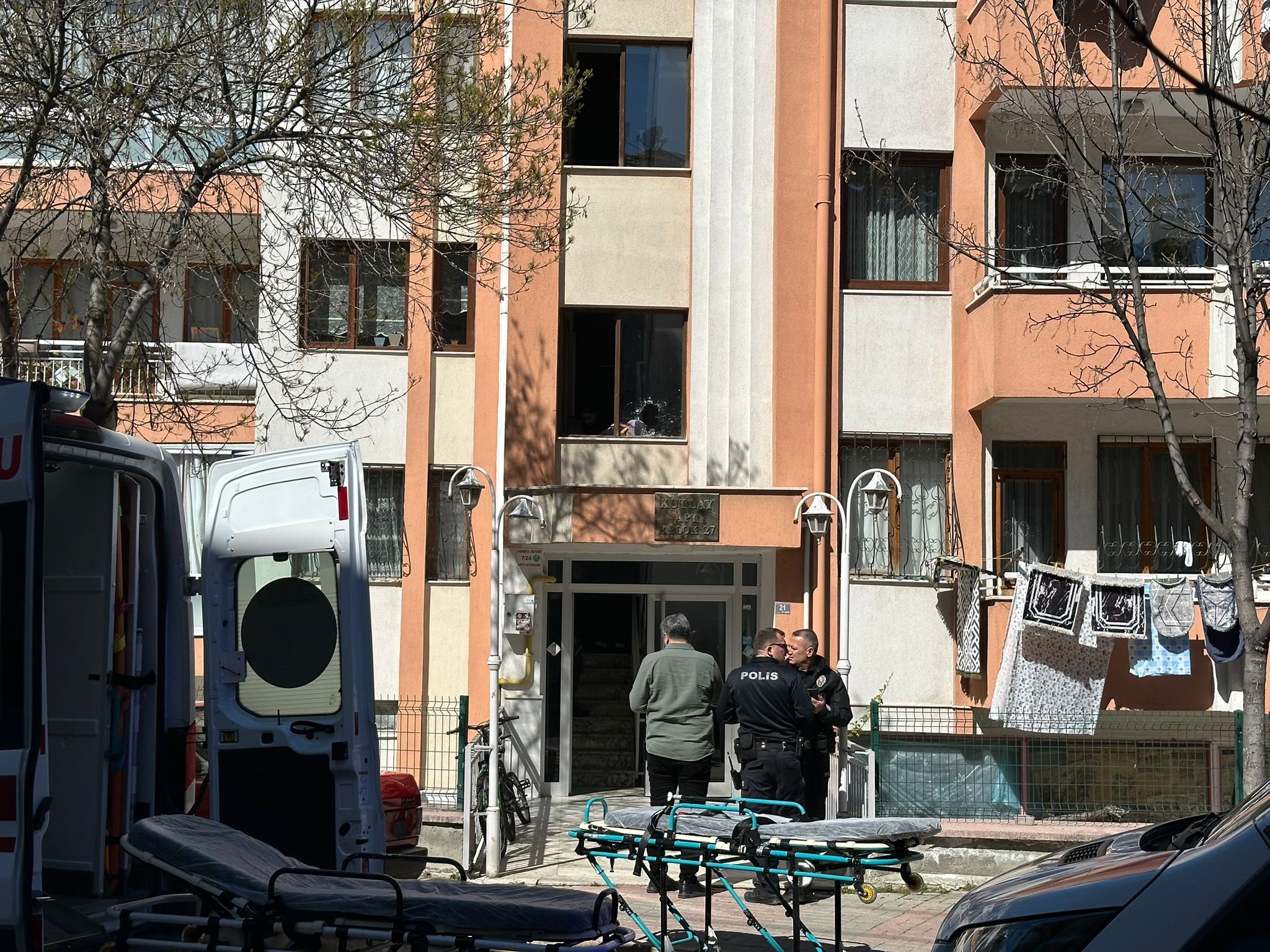 Silahtan çıkan mermilerin apartman girişine isabet ettiği, giriş bölümündeki camları kırarak geçtiği görüldü. Olay sonrası mahallede büyük panik yaşandı. Olayla ilgili katil zanlısı alt komşu gözaltına alındı. Polis ekipleri olayın çıkış nedenine ilişkin geniş çaplı soruşturma başlattı.