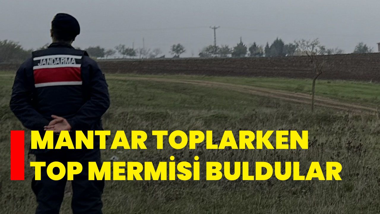 Edirne’nin Büyükdöllük köyünde mantar toplayan köylüler, Balkan Savaşı’ndan kaldığı değerlendirilen patlamamış top mermisi buldu. İhbar üzerine olay yerine sevk edilen jandarma ekibi geniş güvenlik önlemi aldı. Bulunan top mermisi, jandarma bomba imha timi tarafından imha edildi.
