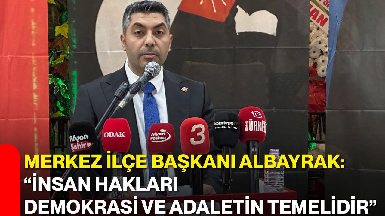 Cumhuriyet Halk Partisi Afyonkarahisar Merkez İlçe Başkanı Murat Albayrak, 10 Aralık Dünya İnsan Hakları Günü kapsamında yayımladığı mesajda, insan haklarının hiçbir ideoloji ya da makamın lütfu değil, tüm bireylerin doğuştan sahip olduğu temel haklar olduğunu vurguladı. Başkan Albayrak, ülkede düşünce özgürlüğünden ekonomik adalete kadar geniş bir alanda derinleşen sorunlara dikkat çekerek demokrasinin ancak insan haklarının güvencede olduğu bir ortamda var olabileceğini belirtti.