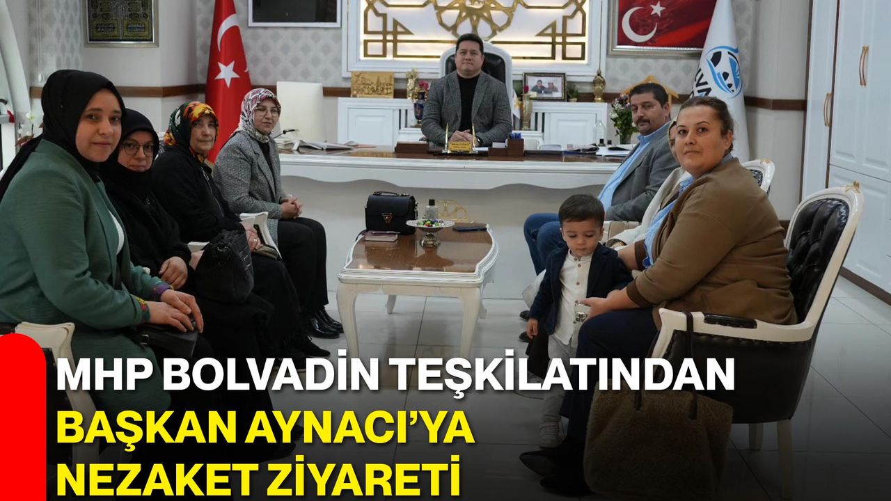Milliyetçi Hareket Partisi Bolvadin İlçe Başkanı Mahmut Kızıltoprak, MHP Kadın Kolları Başkanı Nuriye Gümüş ve KAÇEP Yönetim Kurulu üyeleri, Bolvadin Belediye Başkanı Derviş Aynacı’yı makamında ziyaret etti. Ziyarette ilçe genelinde yürütülen çalışmalar ele alınırken, karşılıklı görüş alışverişinde bulunuldu.