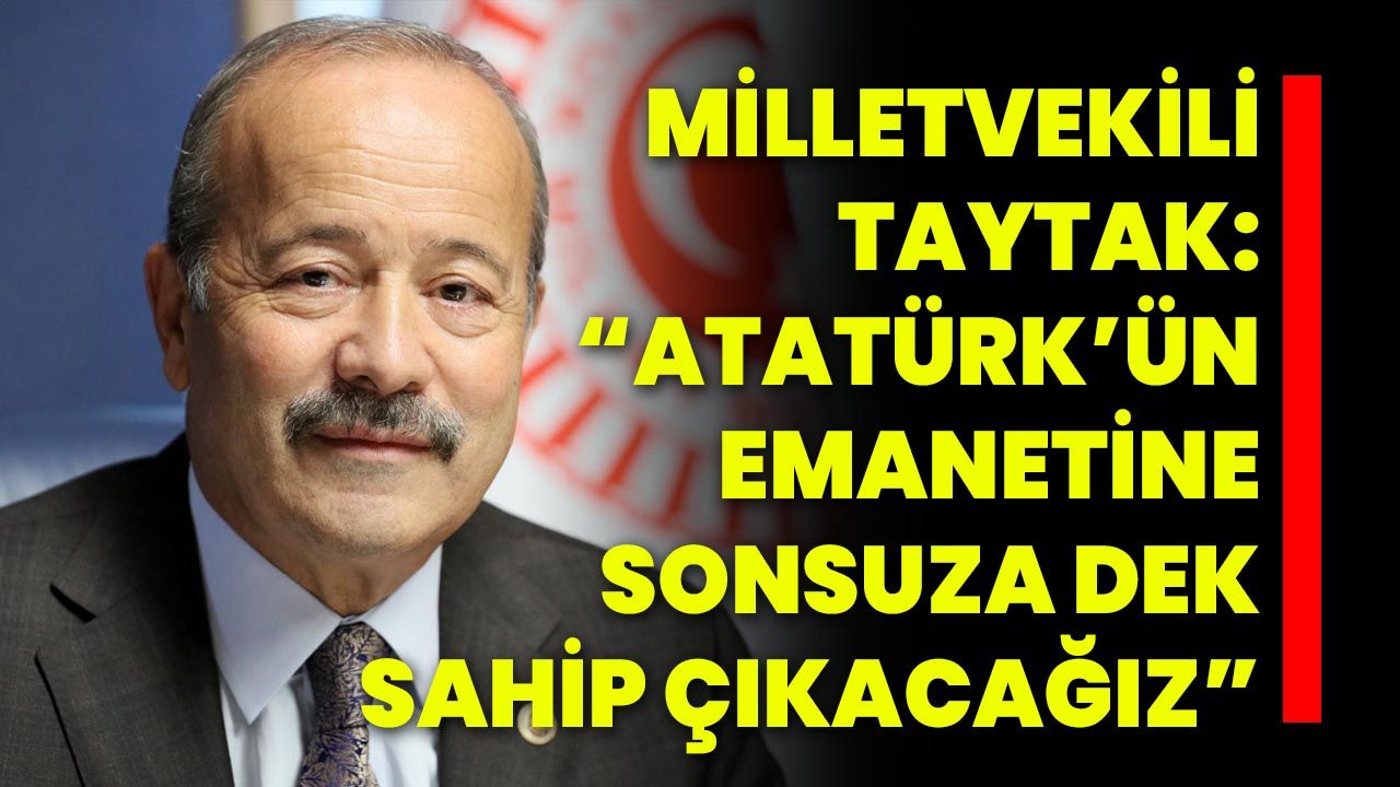 Milletvekili Taytak mesajında ayrıca, Atatürk’ün “En büyük eserim” dediği Türkiye Cumhuriyeti’nin bugün Türk milletinin azmi, inancı ve kararlılığıyla dimdik ayakta olduğunu vurguladı. Atatürk’ün mirasının, Türk milletinin birliği, dirliği ve varlığıyla yaşatılacağını belirten Milletvekili Taytak, Milliyetçi Hareket Partisi olarak bu emanete sahip çıkmaya devam edeceklerini dile getirdi.