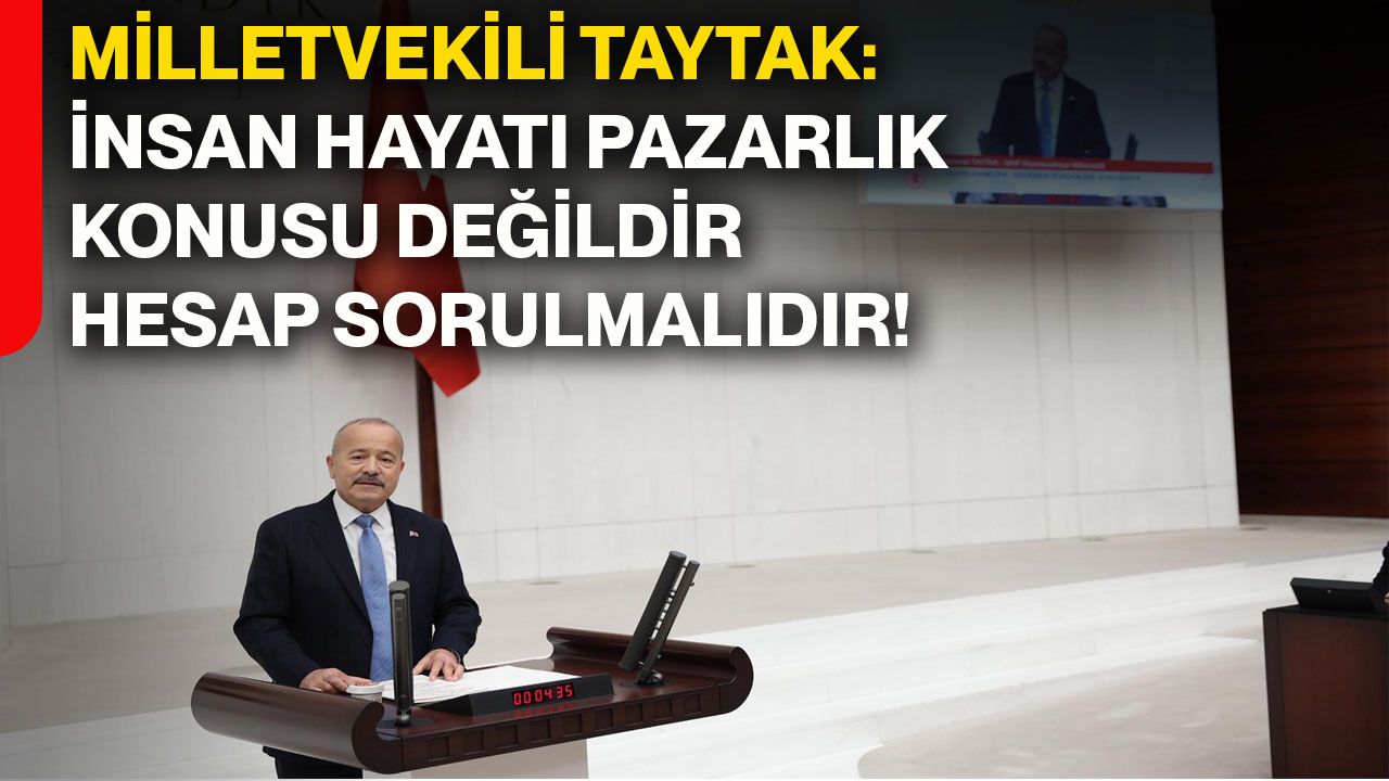 Taytak, İstanbul’da zehirlenen Afyonkarahisarlı vatandaşları, Bolu’daki yangında hayatını kaybedenleri, İzmir’de elektrik akımına kapılarak yaşamını yitirenleri ve İstanbul’da akıma kapılan çocukları örnek göstererek şunları kaydetti: “Kanun var, kurallar var ama uygulanmıyor. Yetkisizlik, denetimsizlik, istismar ve görevi kötüye kullanma, insan hayatını doğrudan tehlikeye atıyor. Bu zincir kırılmalı; ihmal affedilmemeli, adalet gecikmemelidir” dedi.
