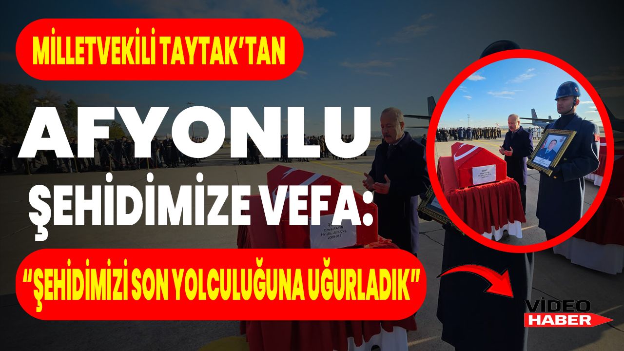 Milliyetçi Hareket Partisi Afyonkarahisar Milletvekili Mehmet Taytak, “Mürted Hava Meydanı’nda Afyonkarahisar Bolvadinli evladımız Emre Sayın ve şehitlerimizi vatan toprağına emanet etmek üzere son yolculuklarına uğurladık.” ifadelerini kullanarak şehidimizin aziz hatırasını saygıyla andı.