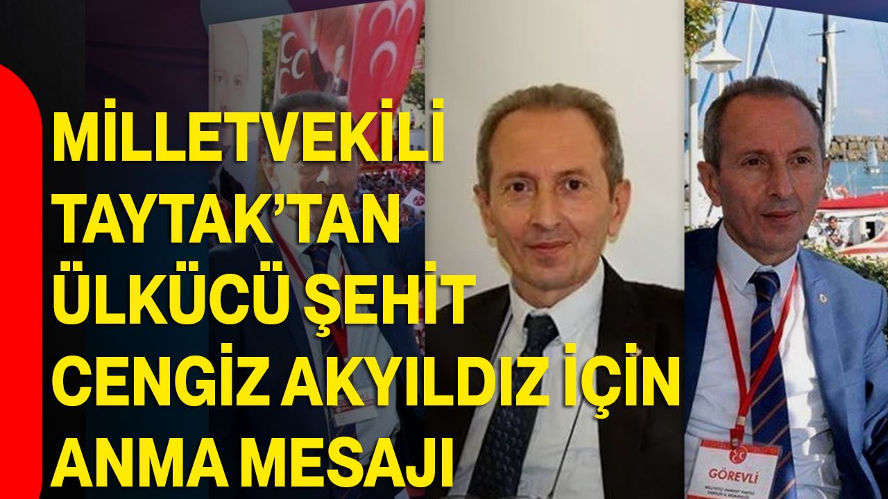 Milletvekili Taytak, yaptığı açıklamada ülkücü şehitlerin Türk milletinin hafızasında müstesna bir yere sahip olduğunu belirterek, “Ülkücü şehidimiz Yusufiyeli Cengiz Akyıldız’ı şehadetinin yıl dönümünde rahmet, minnet ve dualarla anıyoruz. Ruhu şad, mekânı cennet olsun” ifadelerini kullandı.