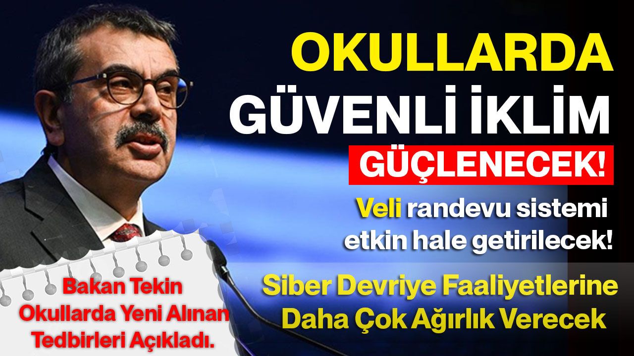 Ayrıca okullarda fiziki güvenlik önlemlerinin de artırılacağını ifade eden Tekin, giriş-çıkış kontrolleri, güvenlik cihazları ve altyapı yatırımlarının da yeni dönemde hızlandırılacağını kaydetti.