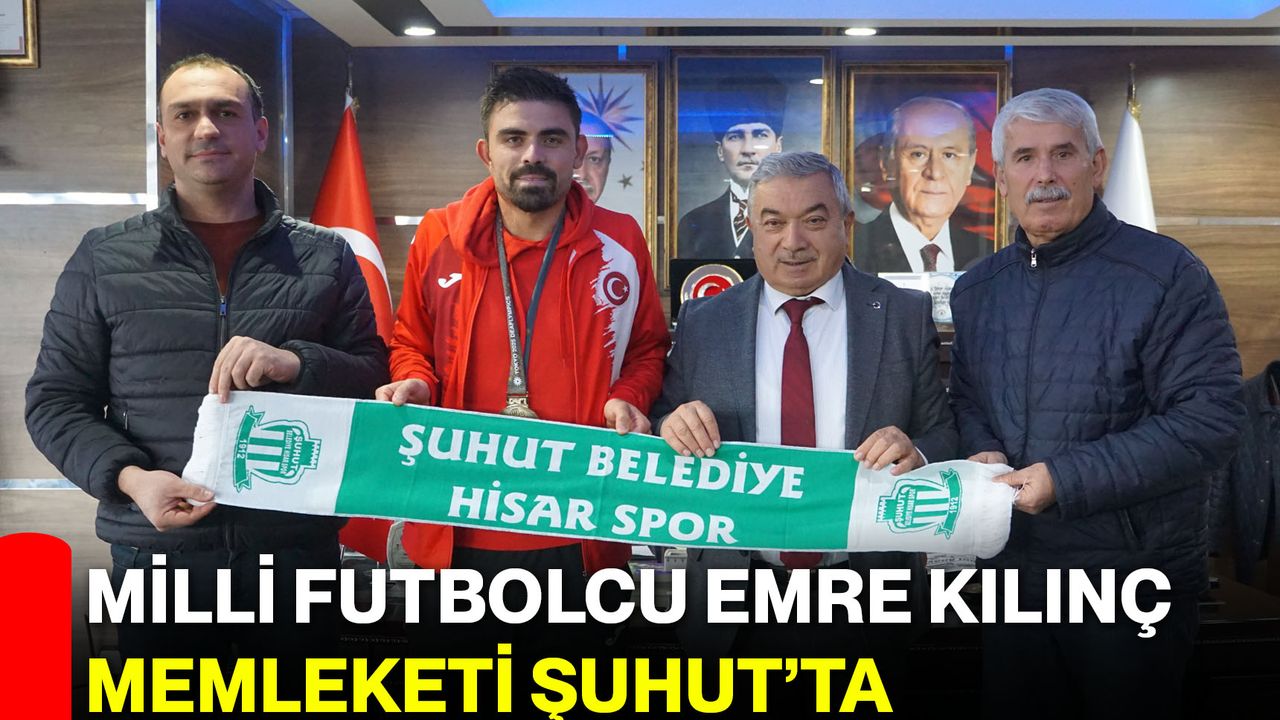 Şampiyon sporcu Emre Kılınç, çeşitli temaslarda bulunmak üzere geldiği memleketi Şuhut’ta Belediye Başkanı Muhittin Özaşkın’ı makamında ziyaret etti. Başkan Yardımcısı Yalçın Özgür, Belediye Meclis Üyesi Halil İbrahim Tekin, İlçe Gençlik ve Spor Müdürü Ahmet Bozkurt ve Şuhut Belediye Hisar Spor Kulüp Başkanı Mesut Çelikkanat’ın da hazır bulunduğu ziyarette, Kılınç’ın olimpiyat başarısı ilçede büyük bir gurur kaynağı oldu. Başkan Özaşkın, milli futbolcuya Şuhut Belediye Hisar Spor atkısı ve çeşitli hediyeler takdim etti.