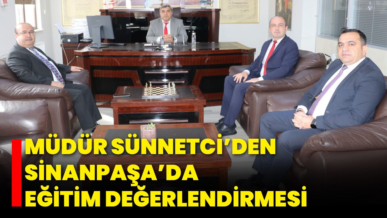 Afyonkarahisar İl Milli Eğitim Müdürü Miraç Sünnetci, Sinanpaşa İlçe Milli Eğitim Müdürlüğünü ziyaret etti. Ziyarette İlçe Milli Eğitim Müdürü Yasin Duru’dan ilçedeki eğitim faaliyetleri ve mevcut projeler hakkında bilgi alan Sünnetci, yapılması planlanan yeni çalışmalarla ilgili görüş alışverişinde bulundu.