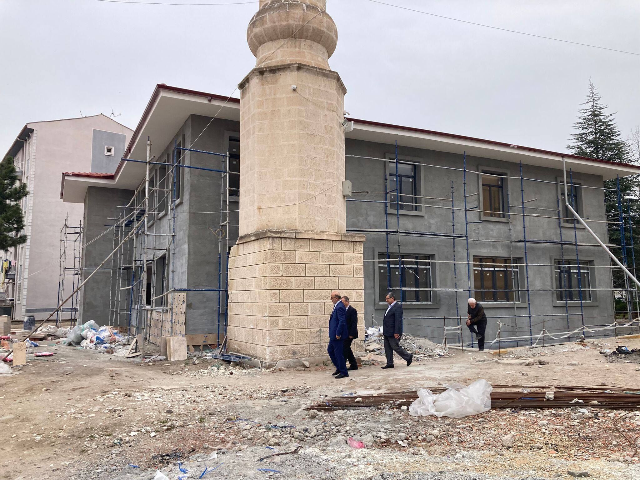 Depreme dayanıklı olmadığına dair rapor doğrultusunda yıkılan caminin, dernek tarafından yeniden inşa edildiği öğrenildi. İnşaat alanını gezen İl Müftüsü İmamoğlu ve beraberindeki heyet, yürütülen çalışmalar hakkında yetkililerden bilgi aldı.