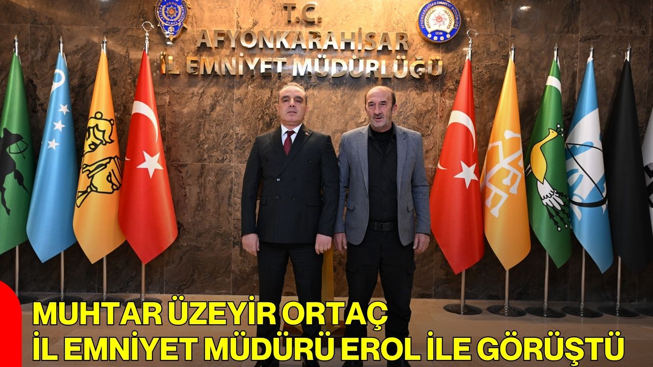 Afyonkarahisar Çayırbağ Ali Çetinkaya Mahallesi Muhtarı Üzeyir Ortaç, Afyonkarahisar İl Emniyet Müdürü Ahmet Birtan Erol’u makamında ziyaret etti. Gerçekleşen ziyarette karşılıklı görüş alışverişinde bulunulurken, mahalleye yönelik çalışmalar ve yerel düzeyde yürütülen hizmetler hakkında değerlendirmeler yapıldı.