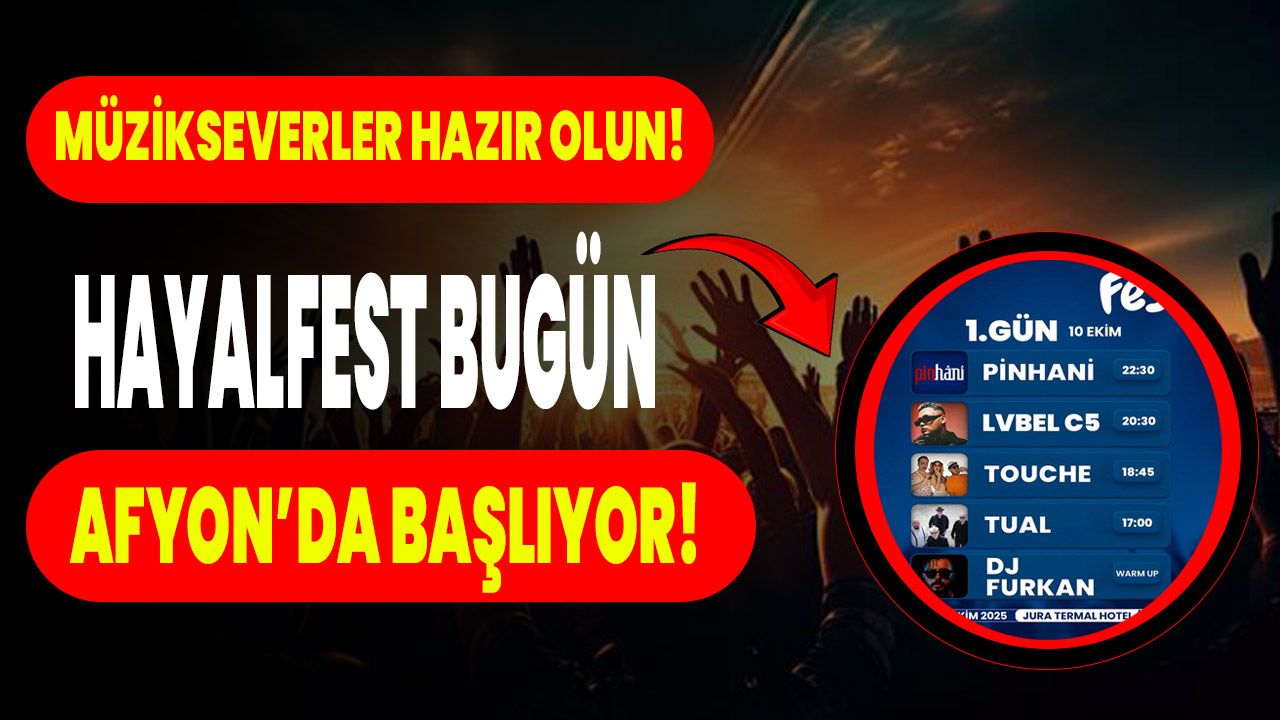 Afyonkarahisar, 10 Ekim 2025 – Jura Termal Hotel’de düzenlenen HayalFest 2025, bugün birbirinden ünlü sanatçıların sahne alacağı ilk günüyle müzikseverlerle buluşuyor. Üç gün sürecek festival, Afyonkarahisar’da eğlence, enerji ve müzik dolu anlar yaşatacak.