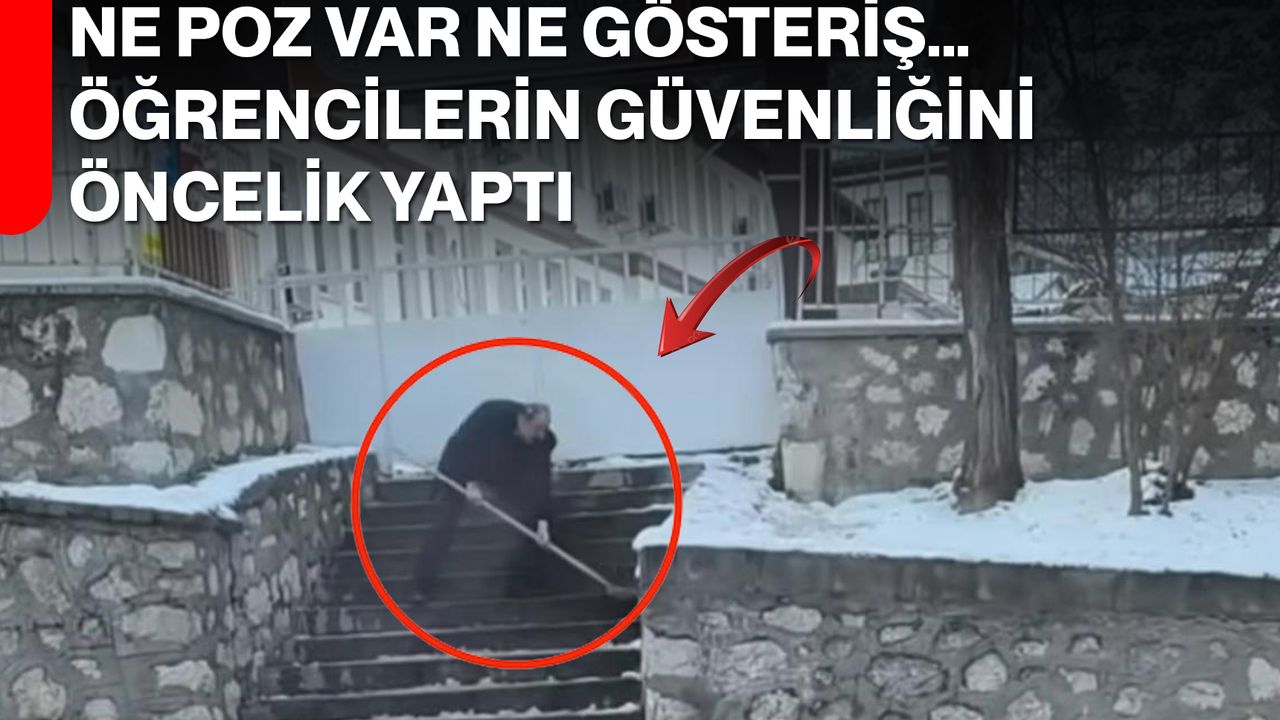 Okul Müdürü Satılmışoğlu’nun herhangi bir yönlendirme ya da talimat vermeden, bizzat küreği eline alarak merdivenlerde biriken karı temizlemesi dikkat çekti. Gösterişten uzak ve tamamen öğrencilerin güvenliğini önceleyen bu davranış, eğitim camiasında takdirle karşılandı. Eğitim ortamlarında sorumluluk bilincinin önemini ortaya koyan bu örnek tutum, veliler ve öğrenciler tarafından da memnuniyetle değerlendirildi.