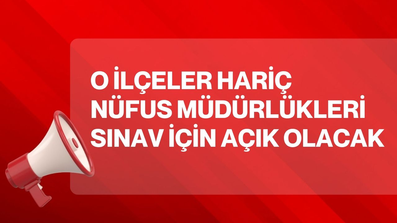 Buna göre, 26 Nisan 2026 Pazar günü sınava katılacak öğrencilerin işlemlerini gerçekleştirebilmeleri için il genelindeki ilçe nüfus müdürlükleri (Kızılören ve Hocalar ilçeleri hariç) saat 07.30 ile 12.30 arasında açık olacak. Yetkililer, sınava girecek tüm adaylara başarı dileklerini iletirken, gerekli belgelerle birlikte nüfus müdürlüklerine başvurulması gerektiğini hatırlattı