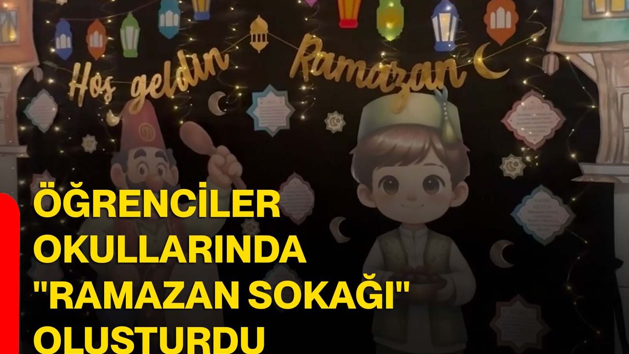 Okulların süslendiği Aksaray'da "Ramazan Sokağı" adı verilen bölümde bir öğrenci, çalışmalar sırasında ramazan davulu çalıp mani okudu.