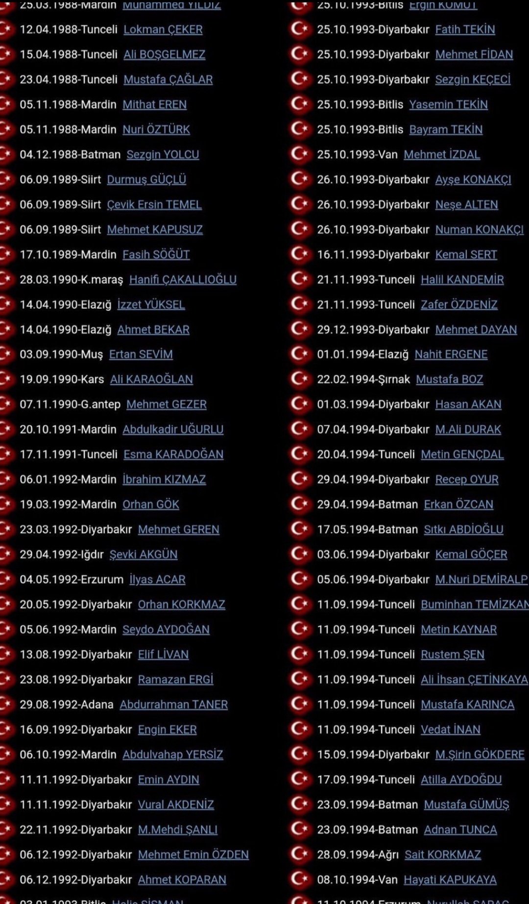 Olgun, paylaştığı listede yer alan isimlerin yalnızca bir kısmının, “İmralı kayığına binme yarışına girenlerin muhatap aldığı teröristbaşı tarafından şehit edildiğini” ifade etti.