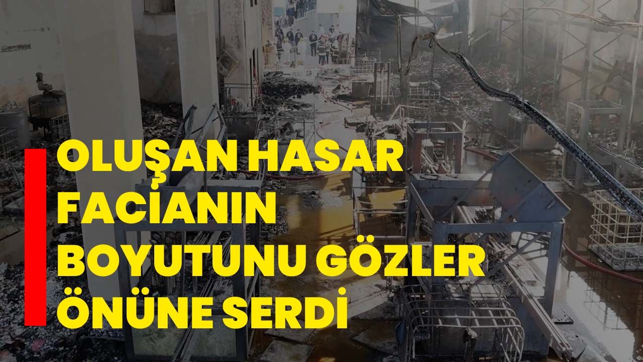 Yangının ardından tesiste yapılan incelemelerde içerideki tüm malzemelerin yandığı, metal iskeletlerin dahi zarar gördüğü belirlendi. Dron ile kaydedilen görüntülerde fabrikanın iç kısmında oluşan büyük tahribat facianın boyutunu gözler önüne serdi.