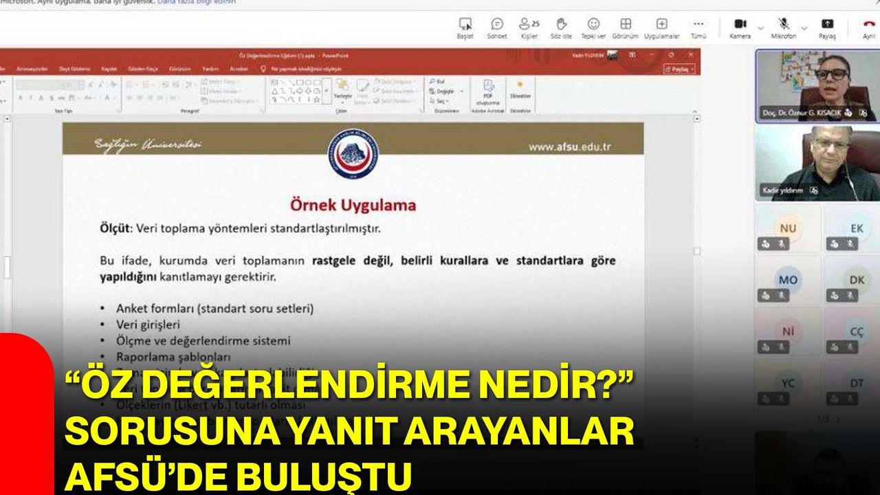 Eğitime AFSÜ Kalite Koordinatörü Doç. Dr. Öznur Gürlek Kısacık, birim yöneticileri ve birim kalite temsilcileri katıldı. Çevrim içi platformda gerçekleştirilen eğitimde, değerlendirme takımı ile birim yöneticileri, kalite, eğitim, araştırma ve geliştirme, toplumsal katkı komisyonu üyelerinin görüşme ve 360° değerlendirme süreçleri uygulamalı olarak aktarıldı. Soru-cevap bölümünün ardından tamamlanan eğitim, birimlerin akreditasyon hazırlıklarını güçlendirmeyi ve öz değerlendirme süreçlerinin etkinliğini artırmayı hedefliyor.
