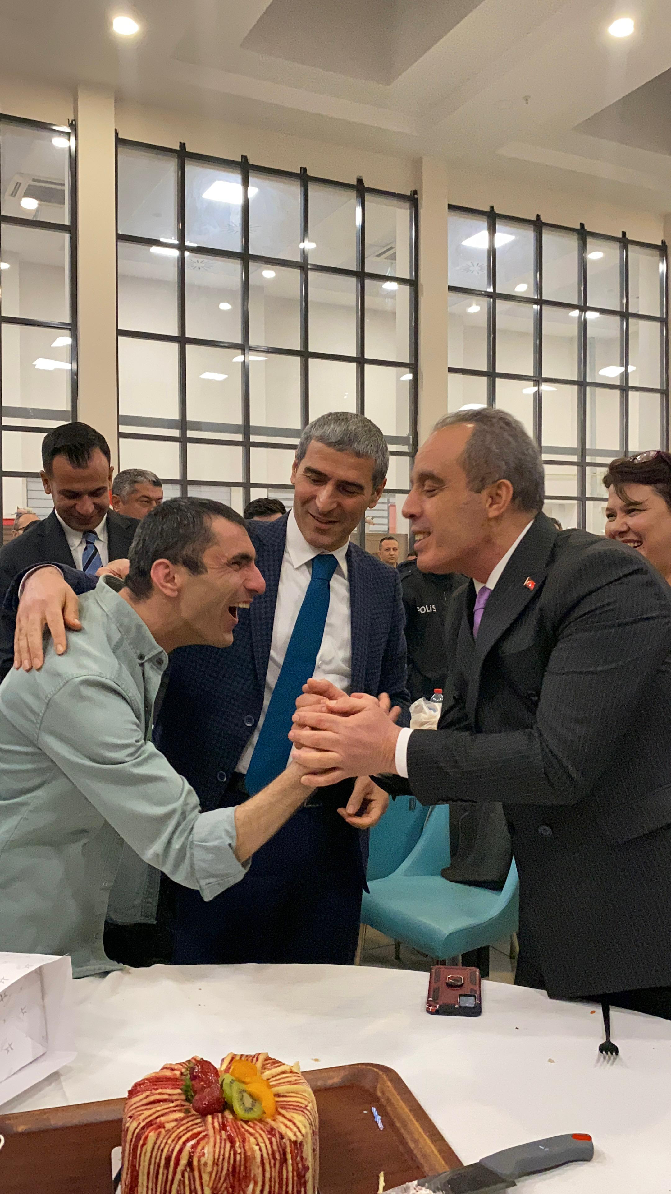 Kutlama sırasında Vali Aktaş, Fatih Arslan’a doğum günü hediyesi de verdi. Sürpriz karşısında büyük sevinç yaşayan Arslan’ın mutluluğu programa katılan herkesi duygulandırdı.