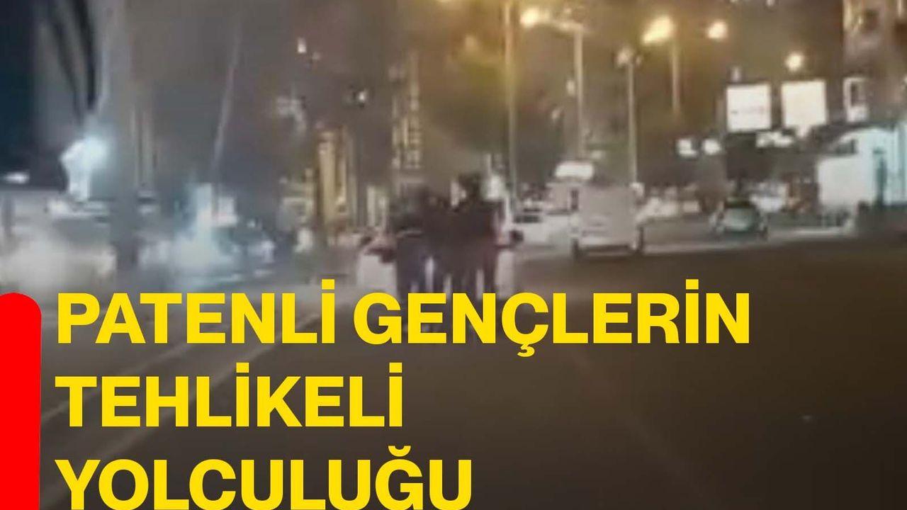 Şehir merkezinde patenli üç genç, trafiğin yoğun olduğu güzergahta otomobilin arkasına asılıp ilerledi. Tehlikeli yolculuk, arkalarında ilerleyen bir otomobilin içinden cep telefonuyla kayda alındı.