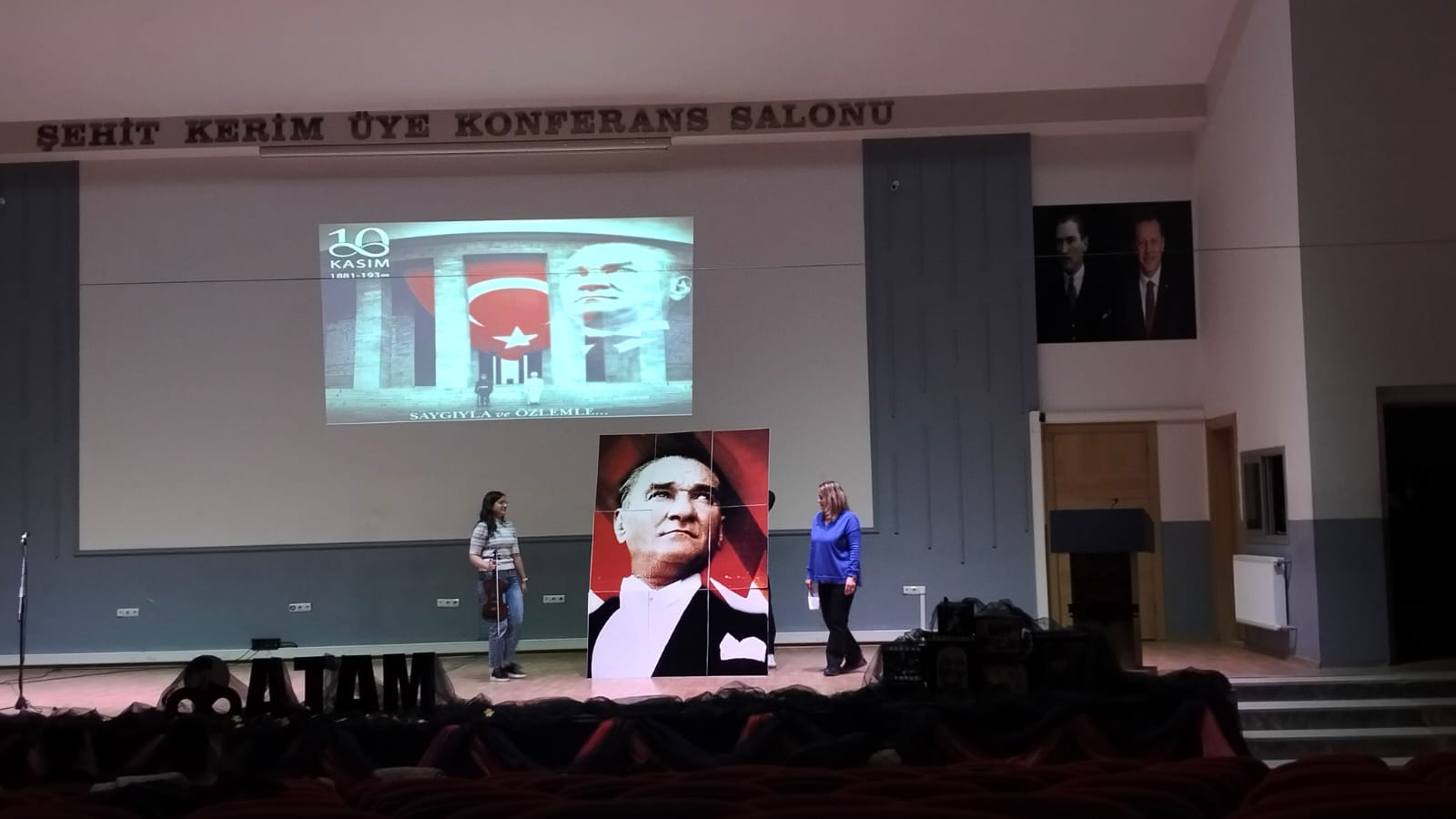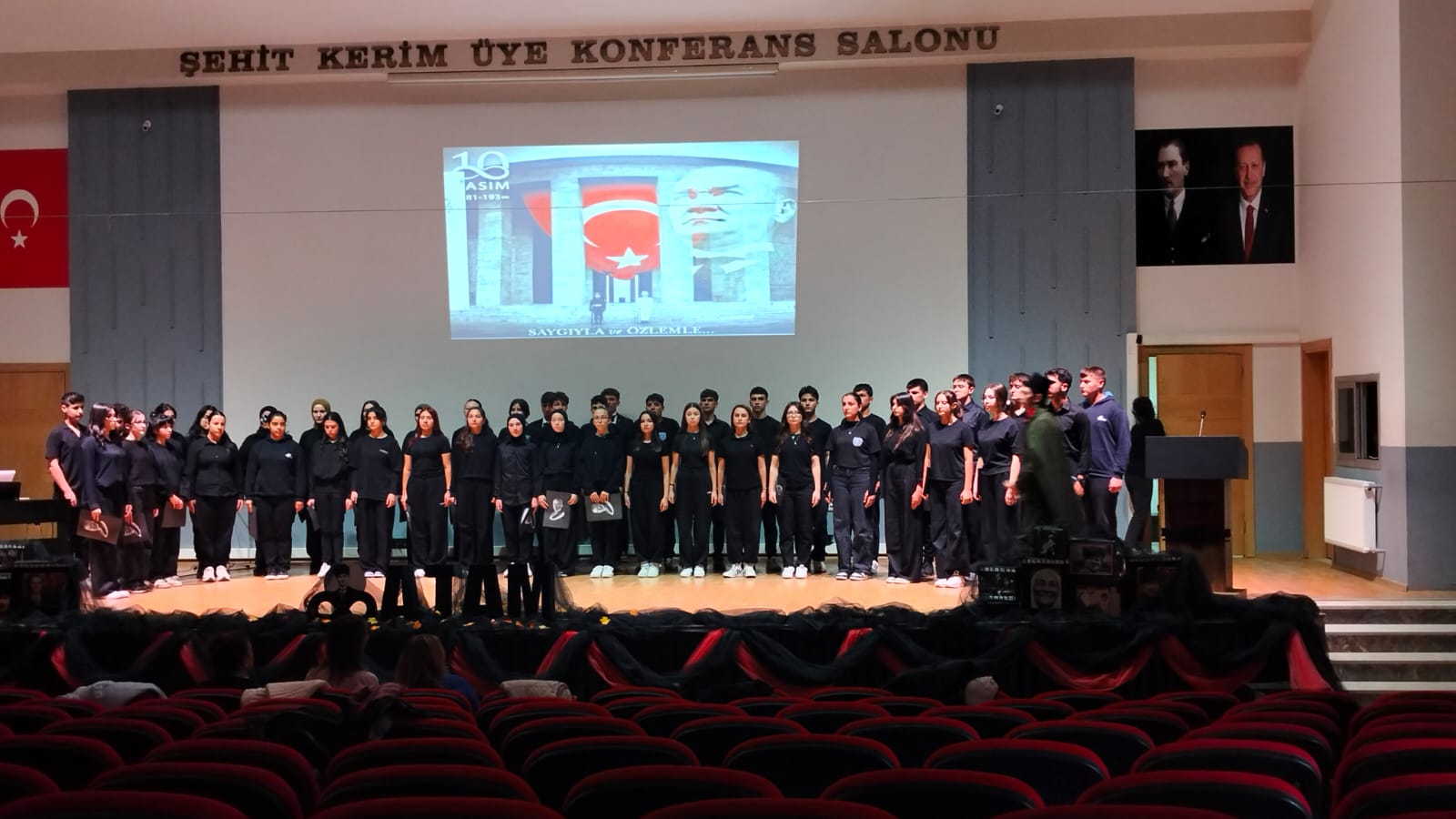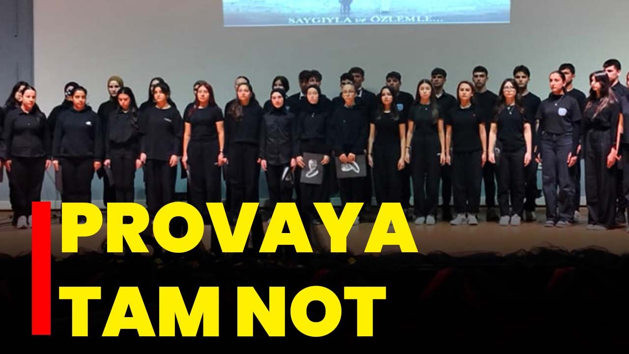 Kamil Miras Anadolu Lisesi Şehit Kerim Üye Konferans Salonunda yapılan prova, izleyenlerden tam not aldı. 10 Kasım sabahı gerçekleştirilecek resmi anma törenine hazırlanan öğrenciler, öğretmenlerinin rehberliğinde titizlikle çalışmalarını sürdürüyor.