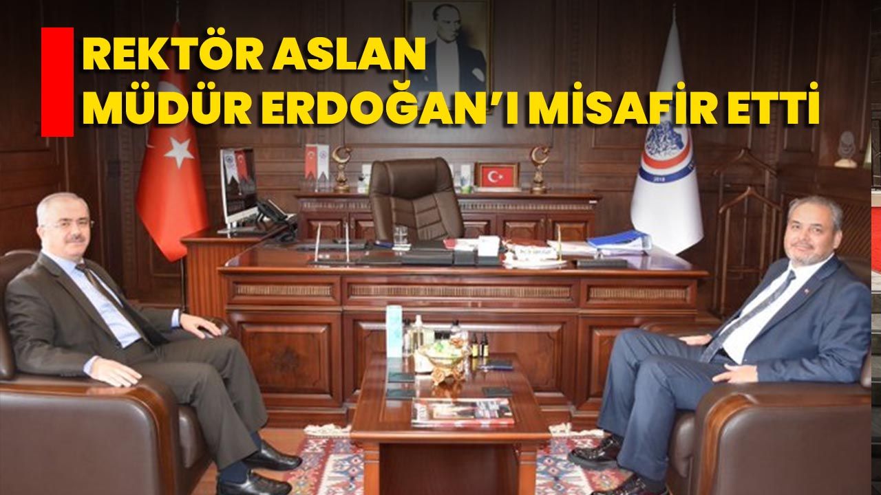 Prof. Dr. Aslan, yeni görevi dolayısıyla kendisini tebrik eden İl Müdürü Erdoğan’a nazik ziyareti için teşekkür ederek, üniversite olarak sosyal hizmet alanında yürütülen çalışmalara her zaman destek vermeye hazır olduklarını ifade etti.