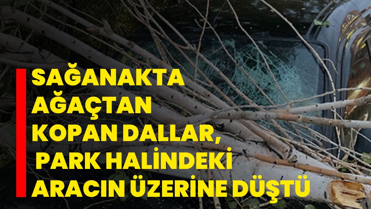 Hoşnudiye Mahallesi Orçun Sokak'ta sağanak nedeniyle düşen ağaç dalları, yol kenarında park halinde bulunan hafif ticari aracın üzerine düştü.