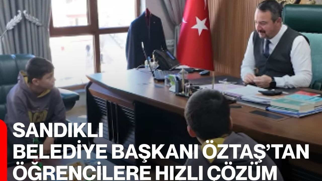 Sandıklı Belediye Başkanı Adnan Öztaş, Ali Çetinkaya Ortaokulu’nda öğrenim gören iki öğrenciyi makamında kabul ederek taleplerini dinledi. Öğrenciler, mahallelerinde bulunan ve aktif olarak kullanılan halı sahadaki bazı eksiklerin giderilmesine yönelik isteklerini Başkan Öztaş’a iletti.