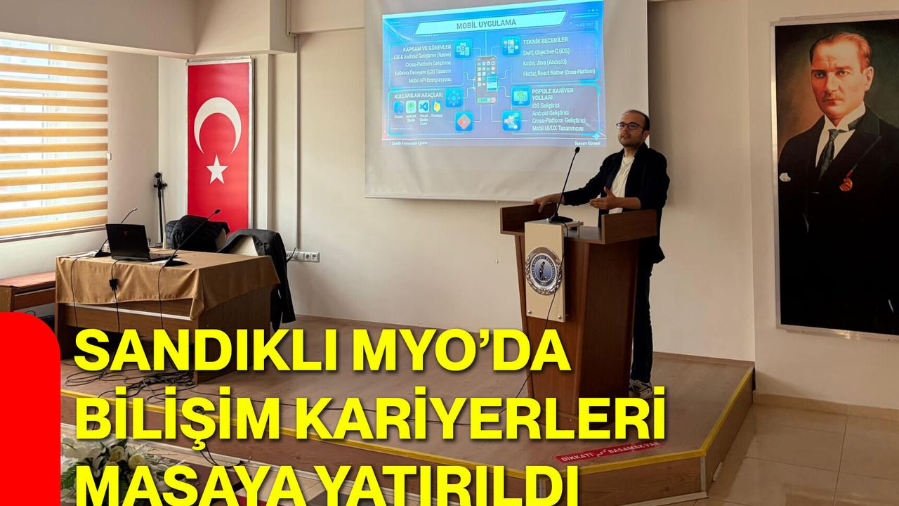 Afyon Kocatepe Üniversitesi (AKÜ) Sandıklı Meslek Yüksekokulu, bilişim sektöründe kariyer planlamasına ışık tutan bir söyleşiye ev sahipliği yaptı. Sandıklı Yunus Emre Kampüsü Konferans Salonu’nda gerçekleştirilen etkinliğe, akademik ve idari personel ile öğrenciler yoğun ilgi gösterdi.