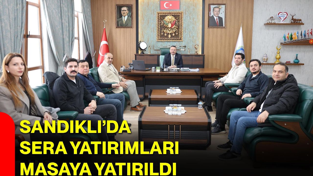 Sandıklı’da tarımsal üretim ve sera yatırımları kapsamında yürütülen çalışmalar, Sandıklı Belediye Başkanı Adnan Öztaş’ın makamında gerçekleştirilen ziyaretle ele alındı. İlçede faaliyet gösteren sera yatırımcılarının katıldığı görüşmede, mevcut yatırımların durumu değerlendirilirken sektörün genel görünümüne ilişkin karşılıklı görüş alışverişinde bulunuldu.
