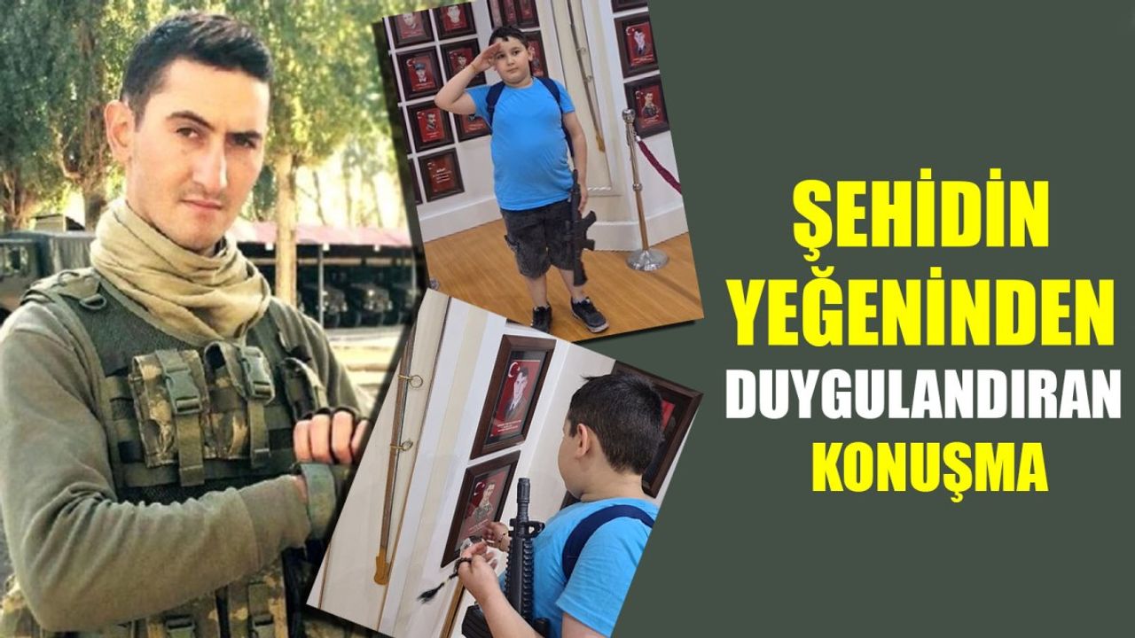 Dayısının fotoğrafı ile konuşan Yağız, “Bu tespih hatıra olsun. Dayıma hediye bıraktım. Dayımı çok seviyorum, hiç üzülme silah arkadaşların senin intikamını alacak. Senin için, şehit arkadaşların için vatanımız için intikamını alacağım. Teröristleri bombalayacağız. Yani senin intikamını böyle alacağım.” dedi. HABER: GÖKHAN KOCAASLAN