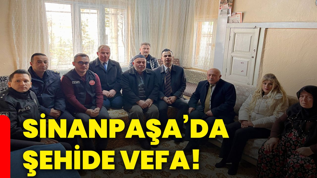 Sinanpaşa Kaymakamı Emrah Aslan ve ilçe protokolü, Küçükhüyük beldesinde kahraman şehit Mahmut Adıgüzel’in ailesini ziyaret etti.