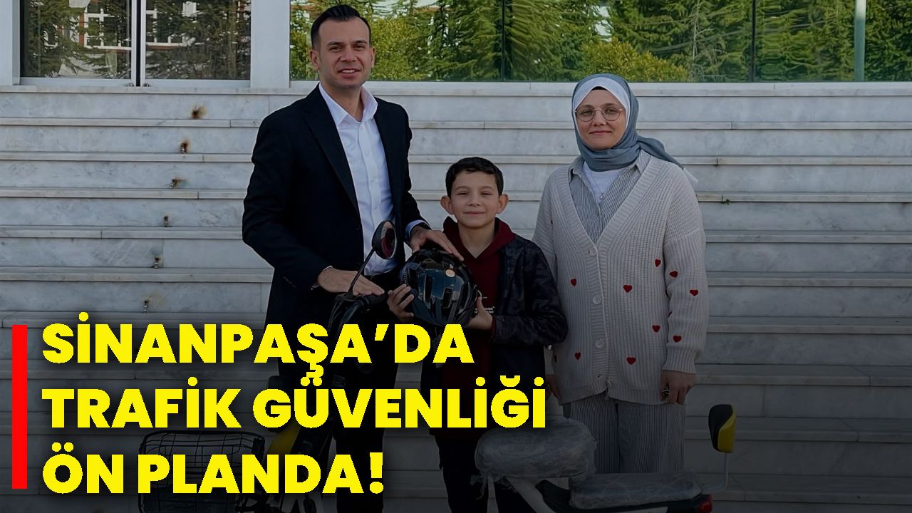 Sinanpaşa Kaymakamı Emrah Aslan, trafik güvenliğine dikkat çekmek amacıyla 27 Ağustos Ortaokulu öğrencisi Emre Nebi’ye kask hediye etti.