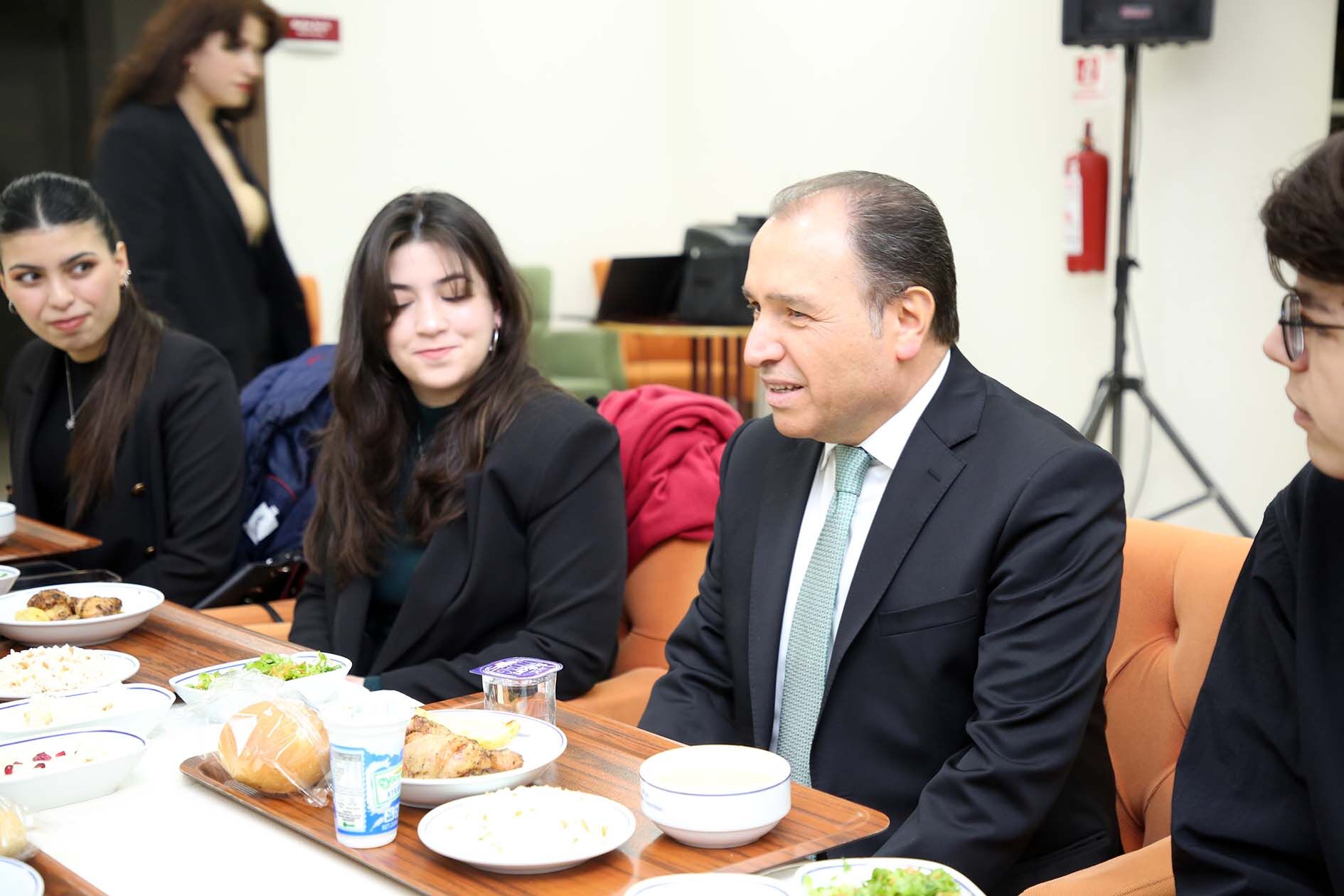 Rektör Karakaş, açıklamasının ardından öğrenci kulüp ve topluluk başkanları ile uluslararası öğrenciler ile bir süre sohbet etti.