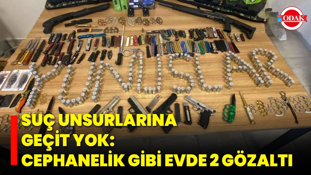 Yürütülen çalışmalar kapsamında yapılan aramada; 2 adet ruhsatsız pompalı tüfek ve bunlara ait 269 kartuş, 3 adet kurusıkı tabanca ile 410 fişek, 104 farklı kesici alet, 2 elektro şok cihazı, 26 muşta, 1 teleskopik jop ve 1 kelepçe bulundu.