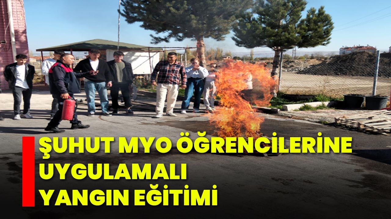 Afyon Kocatepe Üniversitesi Şuhut Meslek Yüksekokulu’nda öğrenim gören öğrencilere yönelik, Şuhut Belediyesi İtfaiye Müdürlüğü ekipleri tarafından kapsamlı bir yangın eğitimi gerçekleştirildi. Laborant ve Veteriner Sağlık Bölümü “Gönüllülük Çalışmaları” dersi kapsamında Doğal Afet Timi bünyesindeki öğrencilere verilen eğitimde; yangınlara karşı alınacak tedbirler, müdahale teknikleri ve doğru ekipman kullanımı detaylarıyla anlatıldı.