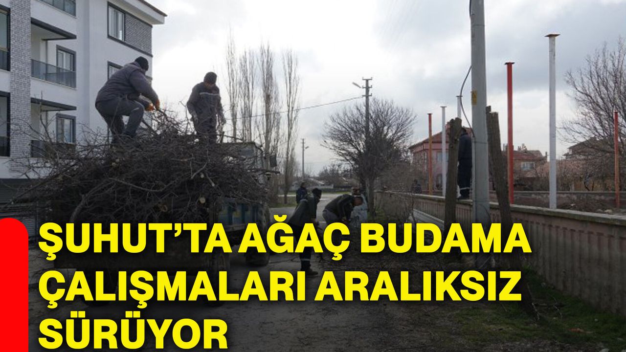 Şuhut Belediyesi Park ve Bahçeler Müdürlüğü ekipleri tarafından ilçede yürütülen ağaç budama çalışmaları planlı program doğrultusunda devam ediyor. İlçenin farklı noktalarında sürdürülen çalışmalar kapsamında ağaçların sağlıklı gelişimini desteklemek ve vatandaşların güvenliğini sağlamak amacıyla budama işlemleri gerçekleştiriliyor.
