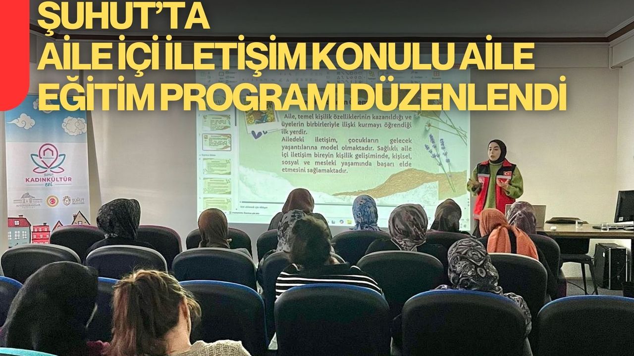 Şuhut Sosyal Hizmet Merkezi tarafından, 2025 Aile Yılı etkinlikleri çerçevesinde Şuhut Kadın Kültür Evi’nde Aile Eğitim Programı (AEP) eğitimi düzenlendi. “Aile İçi İletişim” başlığıyla gerçekleştirilen programda, aile bireyleri arasındaki sağlıklı iletişimin önemi vurgulandı.