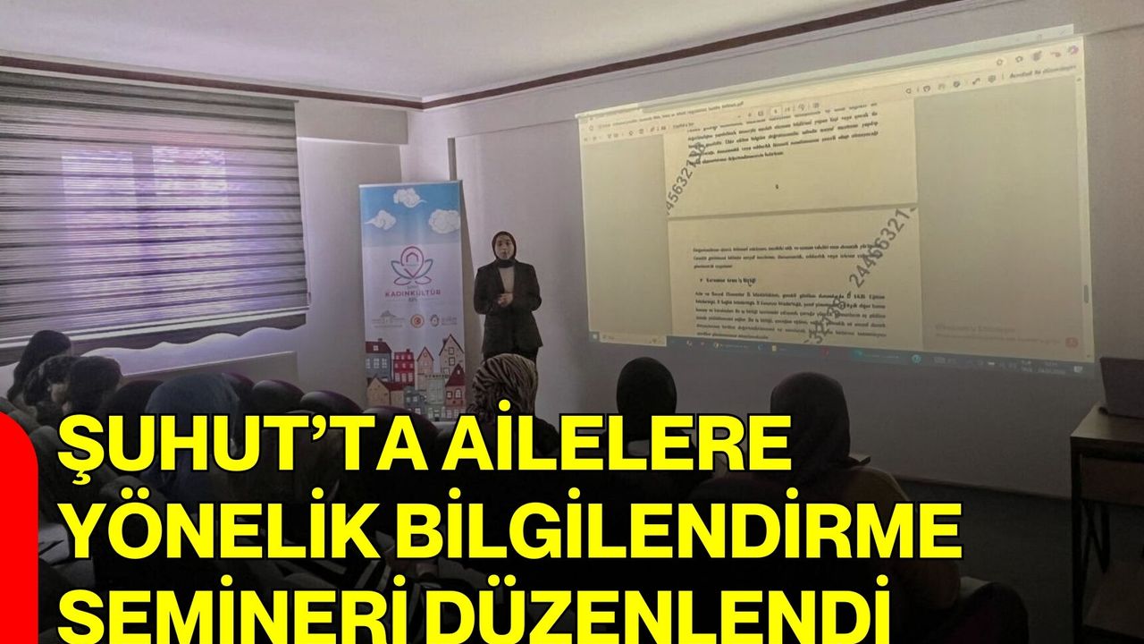 Afyonkarahisar Aile ve Sosyal Hizmetler İl Müdürlüğüne bağlı Şuhut Sosyal Hizmet Merkezi tarafından, Şuhut Kadın Kültür Evi’nde bilgilendirme semineri gerçekleştirildi. Program kapsamında “Çocuklar Güvende” ile “İlk Öğretmenim Ailem” mobil ve web uygulamaları hakkında katılımcılara detaylı bilgiler verildi.